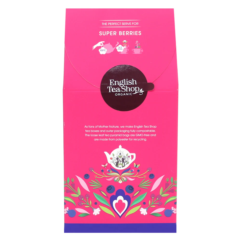Indulge in the vibrant explosion of Super Berries Pyramid Tea Bags. This tantalising blend of berries is rich in flavour and antioxidants, offering a delightful and healthful infusion in every sip.